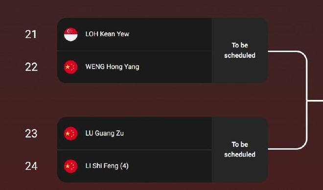 男单首轮签表: