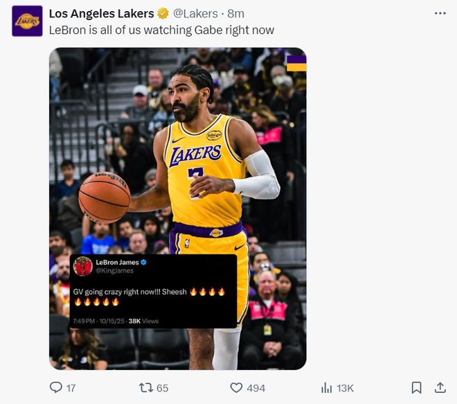 相关阅读:湖人连中库里湖媒文森特NBA勒布朗-詹姆斯