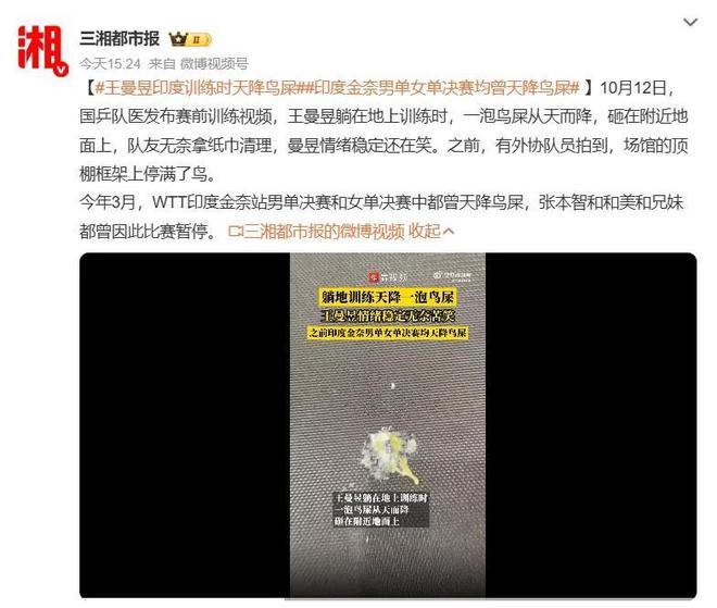 比如王曼昱在训练时,竟然有鸟屎从天上掉落。
