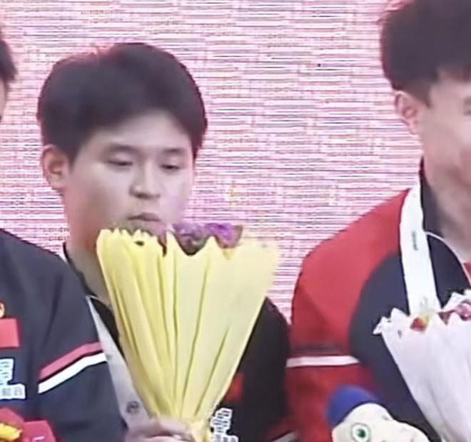 但这还没结束,林诗栋的好奇心太大了,他又去闻了闻吉祥物,他再次被臭到表情失控。