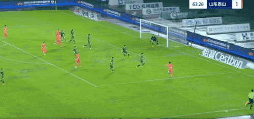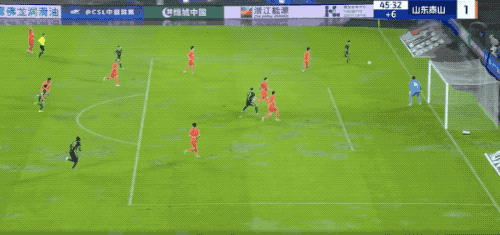 上半场补时第1分钟,孙国文下底传中,洛佩斯摆出姿势,将球漏过,卡列洛笑纳大礼。