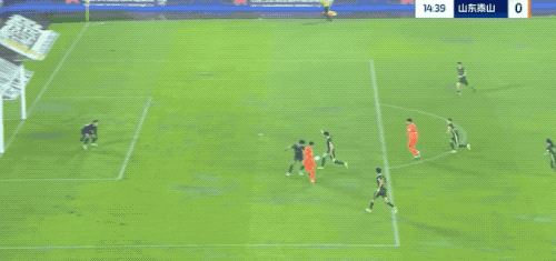 第36分钟,黄政宇禁区外突然起脚远射,皮球直奔死角而去,赵博腾空而起,再次贡献精彩扑救。
