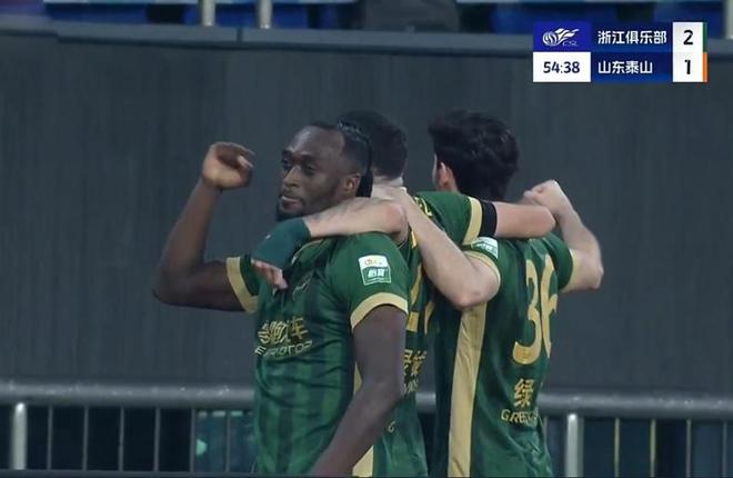 第54分钟,李提香精准直塞,奥乌苏果断打门得手,浙江2-1反超泰山!