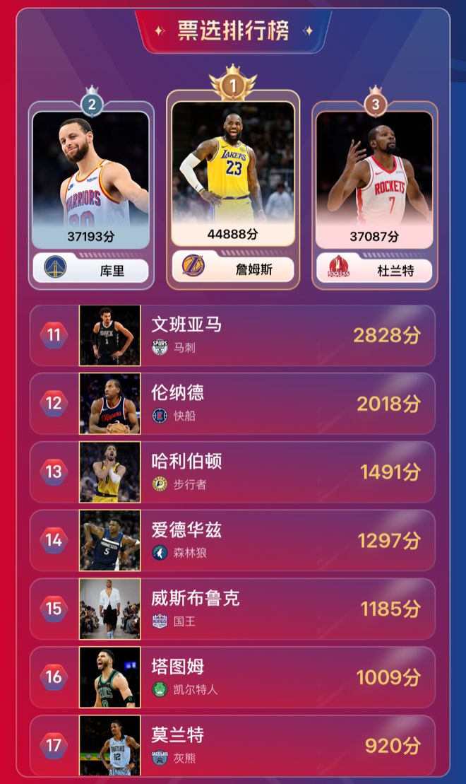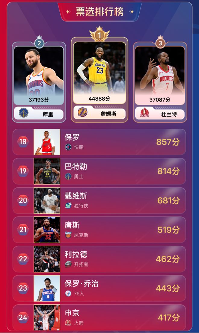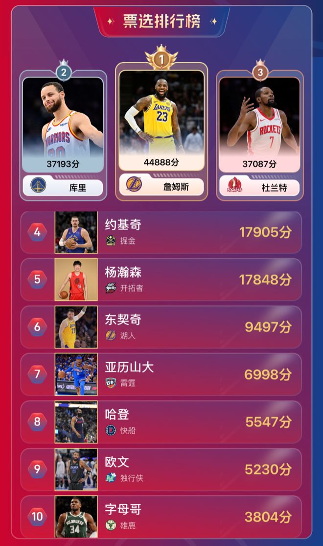 实至名归!NBA新赛季30大球星雷速人气王勒布朗詹姆斯