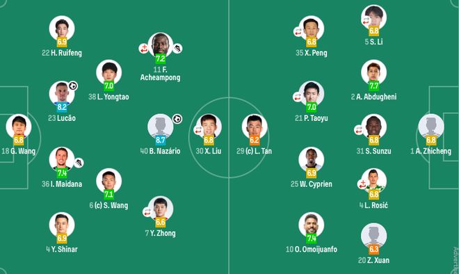第38分钟,纳萨里奥传中刘鑫瑜插上爆射,安智诚神勇用头挡出。