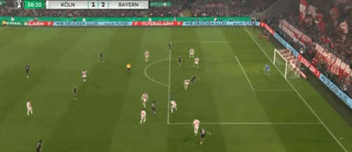 第12分钟,拜仁后防线出现险情,约翰内松获得绝佳机会,乌尔比希飞身将球扑出。2分钟之后,科隆再次通过角球制造威胁,约翰内松传中,马赫门飞身头槌攻门,乌尔比希连续关键扑救。第19分钟,拜仁还以颜色,迪亚斯左路高速突破,禁区内晃开角度低射近角,齐勒及时倒地完成封堵。第31分钟,科隆率先破门: