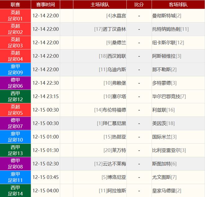 北京时间12月14日02:00,法甲联赛第16轮,巴黎圣日耳曼做客挑战梅斯。上半场,贡萨洛·拉莫斯首开纪录,恩贾恩图扩大领先优势,德曼盖扳回一城。巴黎半场2-1领先梅斯。下半场,替补登场的杜埃打进一球,齐塔伊什维利破门。最终巴黎3-2击败梅斯,取得联赛两连胜,暂升至积分榜榜首。其他赛事比分:英超 伯恩利 2-3 富勒姆西甲 赫塔菲 0-1 西班牙人西甲 马洛卡 3-1 埃尔切西甲 马德里竞技 2-1 巴伦西亚意甲 都灵 1-0 克雷莫纳意甲 帕尔马 0-1 拉齐奥意甲 亚特兰大 2-1 卡利亚里德甲 门兴格拉德巴赫 1-3 沃尔夫斯堡德甲 法兰克福 1-0 奥格斯堡德甲 霍芬海姆 4-1 汉堡德甲 圣保利 2-1 海登海姆德甲 勒沃库森 2-0 科隆法甲 巴黎足球会 0-3 图卢兹法甲 雷恩 3-1 布雷斯特