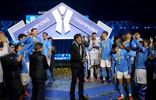 今晨意大利超级杯决赛,那不勒斯凭借内雷斯的梅开二度,2比0击败博洛尼亚,夺得2025年在意甲冠军之后的第2座奖杯。然而,在夺冠的香槟与欢呼声中,主帅孔蒂却为全队注入了一剂强烈的“清醒剂”。他明确表示,即便球队刚刚将意甲冠军与意大利超级杯双双收入囊中,他们也“远未准备好” 去统治意大利足坛。孔蒂的言论建立在他一贯冷酷而现实的“胜者哲学”之上。他首先将赞誉毫无保留地献给了球员,称赞他们踢了一届 “无可挑剔的赛事” ,并将胜利献给球迷,作为最好的圣诞礼物。然而,他随即话锋一转,强调足球世界只认最终赢家。他以自己的亲身经历和那不勒斯的过往为例,阐述这一观点:“只有胜利者才会被记住。别忘了两年前那不勒斯输掉了超级杯决赛,但人们只记得是国际米兰赢了。”孔蒂坦言,无论是作为球员(世界杯、欧洲杯亚军,三次欧冠决赛失利)还是教练,输掉决赛的经历都让他变得更为“冷静”,这种“冷静”源于竭力避免重蹈覆辙,深知若不能最终锦上添花,一切努力都将失色。因此,他特别祝贺了决赛对手博洛尼亚,认可他们已是意大利足坛一股稳固而具有竞争力的力量 。二当被问及连续夺冠是否意味着那不勒斯已超越米兰双雄,成为意甲领跑者时,孔蒂的回答斩钉截铁:“不,我完全不这么认为。如果我说是,那是在撒谎。”他给出了冷静的分析:上赛季的意甲冠军那不勒斯是凭借一套“非常精简的阵容” 赢下的,而本赛季球队引入了大量新援,尚处于磨合阶段。他指引众人关注现实的意甲积分榜,指出本赛季欧冠席位争夺将异常激烈,球队当下的务实目标是 “尽可能紧贴欧冠区” ,而非空谈统治。并重申:“我们既未准备好,也远未接近统治地位。”而针对“胜利仅靠内雷斯个人灵光一现”的说法,孔蒂予以反驳。他承认首个进球是冠军球员的魔力体现,但同时指出球队创造了大量机会,只是终结效率有待提升。他自信地表示,所有与他共事过的球员,在技术、战术和心态上都会取得进步。孔蒂以霍伊伦和麦克托米奈为例,这两位在曼联一度挣扎的球员,如今在那不勒斯重获新生。“如果现在大家都在谈论他们,那肯定是有原因的,这意味着我和教练组做对了一些事。”与孔蒂的审慎相呼应的是俱乐部主席德劳伦蒂斯毫无保留的支持。他将孔蒂誉为 “一位大师” ,并自豪地表示自己在选择教练上“很少犯错”。德劳伦蒂斯特别提到,自马拉多纳时代以来,这是那不勒斯首次在单一年份赢得两座重要奖杯,意义非凡。他鼓励球迷继续梦想,但同时也提醒球队要保持冷静和专注,因为挑战永不停歇。一场酣畅淋漓的胜利,一座金光闪闪的奖杯,搭配的却是一位主帅异常冷静的全局研判。孔蒂的言论,与其说是谦逊,不如说是一份基于现实的战略蓝图。他正在将那不勒斯从“冠军惊喜”的定位,向一个更稳定、更具持续竞争力的“豪门架构”引导。双冠不是终点,而是新一轮艰苦建设的起点。在“加油,那不勒斯!”的狂热梦想之下,孔蒂正用他的务实与严谨,为这支球队勾勒下一段真正属于统治者的征程。