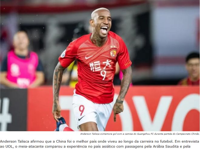 “当时我在广州踢球。这么说吧,我在那里的生活,比在土耳其、沙特过得都要好。”塔利斯卡说,“在我看来,中国就是最棒的国家,生活便利,房子和居住环境都很出色,这简直是奇迹。过去,巴西人对中国还感到很陌生,但我想现在的情况已经不同了。”