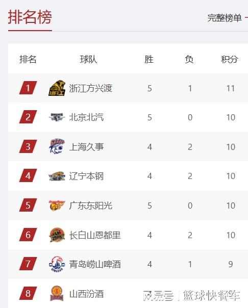 CBA积分榜最新排名出炉!广厦掀翻辽篮冲上第1:广东跌出前四