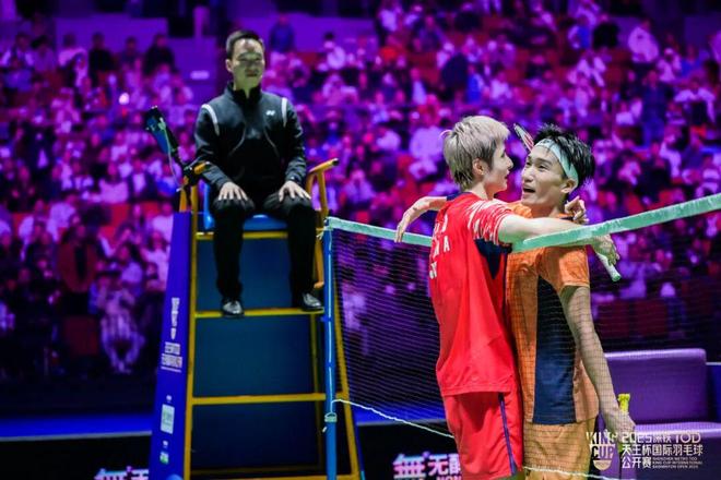 冠军产生后,现场还举行了两场别开生面的表演赛。林丹、桃田贤斗与彼得·盖德、鲍春来各自领衔队伍,携手6名青少年展开欢乐对决,用轻松互动传递“快乐羽毛球”的真谛。最后的球星返场亮点十足,新科冠军石宇奇搭档乔纳坦,季军拉尼尔携手赖浩俊惊喜返场,跨界组合的精彩配合引发全场阵阵欢呼。