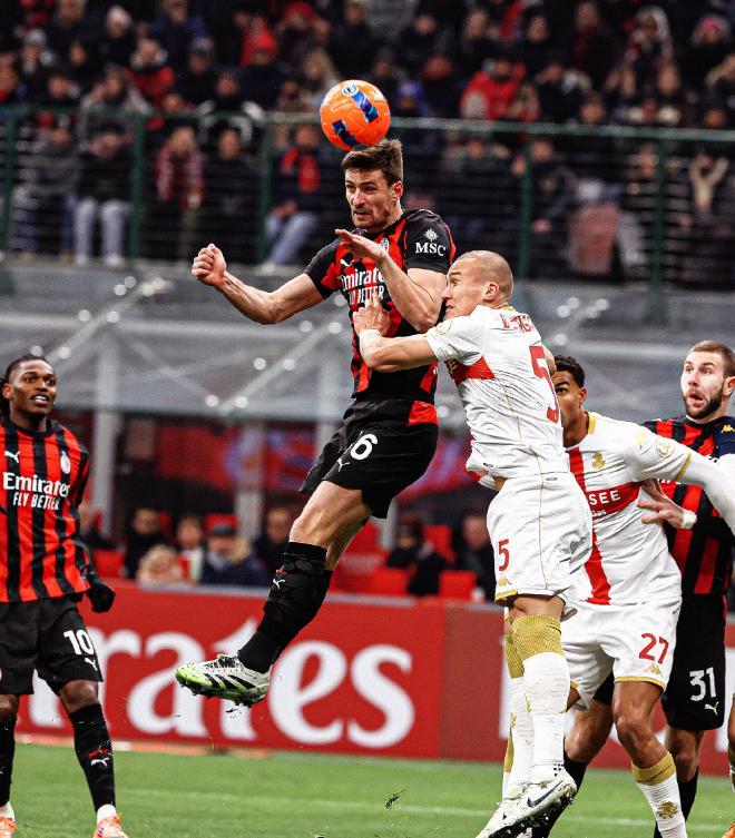 易边再战,AC米兰明显加大了进攻端的投入,第59分钟右侧角球开出后,加比亚前点头球一蹭,后点的普利西奇接力破门得分,但主裁判回看VAR后示意手球,取消了这一粒进球,6分钟之后,米兰再次形成进攻,可惜巴尔泰萨吉左路的推射稍稍偏出。