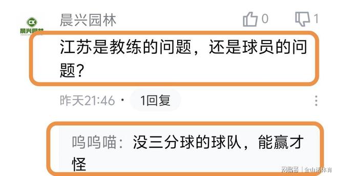 易立率队惨淡的战绩,也被球迷诟病。“江苏队不要脸。易立脸皮厚”;“今年能不能赢下5场”;“易立怎么不会下课的”;“我已经说了很多遍了,江苏有易立在永远不可能崛起”;“易立赶紧下课吧”;“江苏队真的太差了”;“现在的易立成为了新的不倒翁”;“坑爹呀,年年如此”;“没三分球的球队,能赢才怪”;“江苏是教练的问题,还是球员的问题?”……
