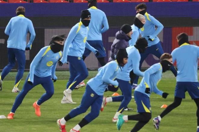 严寒并未阻挡拉菲尼亚的复出,他在因右腿撞伤错过对阵皇家社会的比赛后,已确认可以出战。费兰-托雷斯曾尝试及时恢复,但肌肉问题最终使他与停赛的亚马尔、受伤的加维和克里斯滕森,以及未在欧冠注册的坎塞洛一起留在巴塞罗那。此外,特尔施特根也未随队出征。不过,有五名B队球员入选名单:门将科亨、左后卫霍夫雷-托伦茨、中场托马斯-马克斯、攻击型中场胡安-埃尔南德斯和边锋达尼-罗德里格斯。