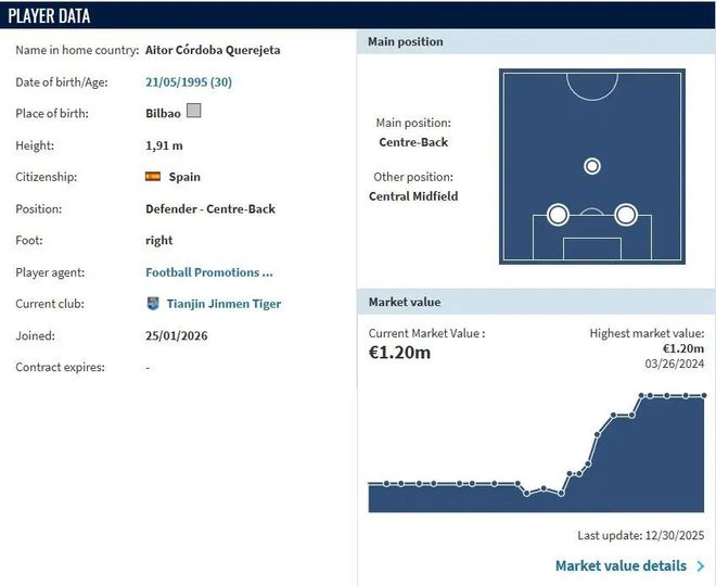 北京时间1月26日,中超联赛最新转会动态,德转宣天津津门虎新外援中卫,身价达120万欧;二年级生大连英博官宣第4名新援,新外援已抵达。