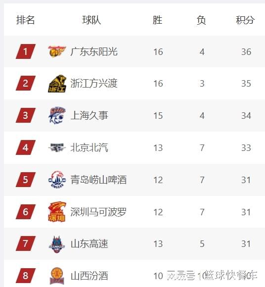 - CBA | CBA积分榜最新排名出炉!广东逆袭广厦杀回第1:辽篮跌至第15名